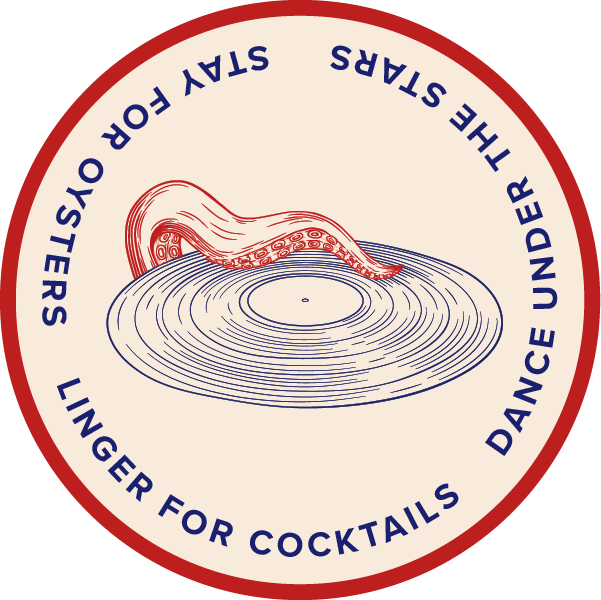 Handgezeichnete Illustrationen bringen Leichtigkeit und Persönlichkeit in das Erscheinungsbild, während die Bildmarke – ein Oktopus-Arm auf einer Schallplatte – den Bar-Charakter unterstreicht und dem Design eine unverwechselbare Note gibt.