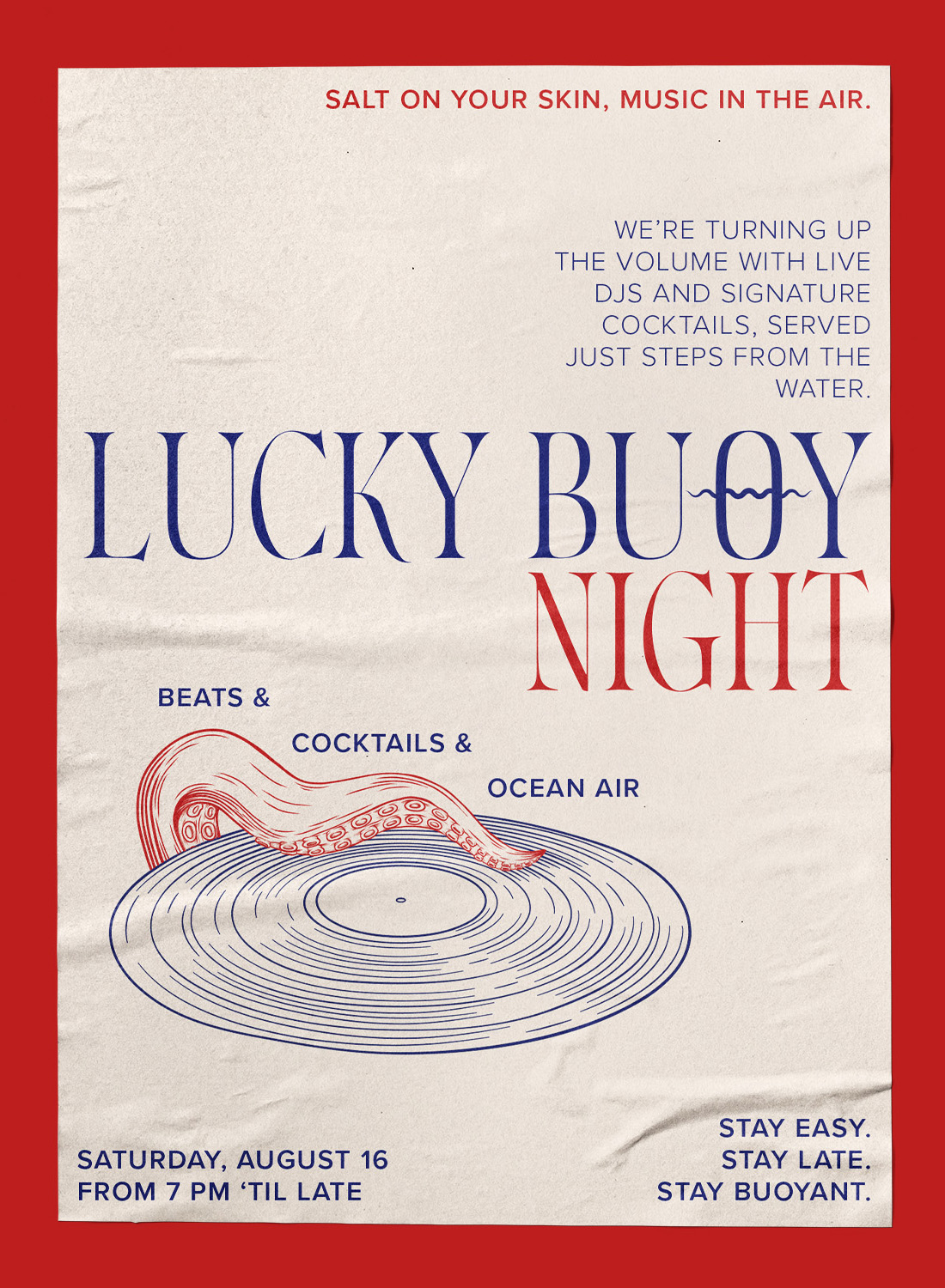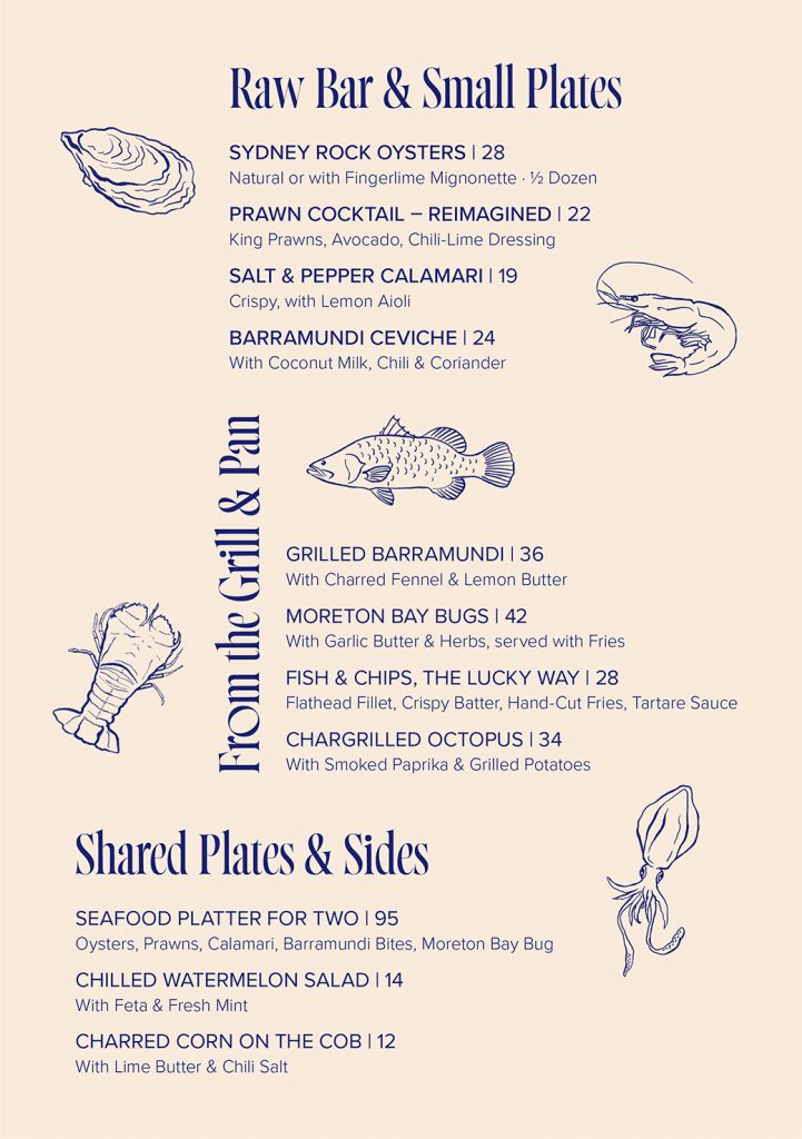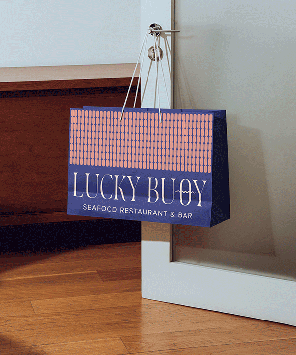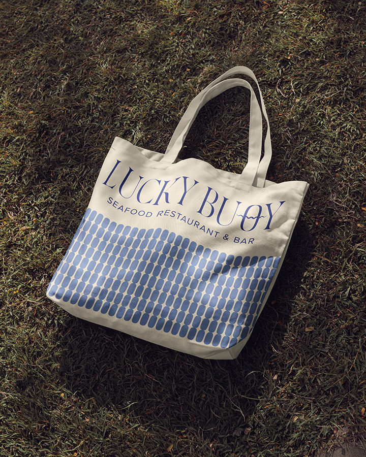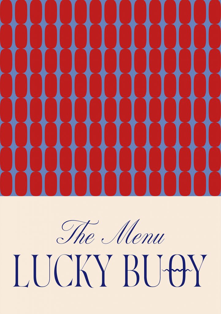 Für das Fischrestaurant und die Cocktailbar „Lucky Buoy“ entstand ein Branding, das die Leichtigkeit eines endlosen Sommers einfängt – sonnengewärmte Abende, salzige Haut, der Sound von Wellen und Musik, die in die Nacht trägt.